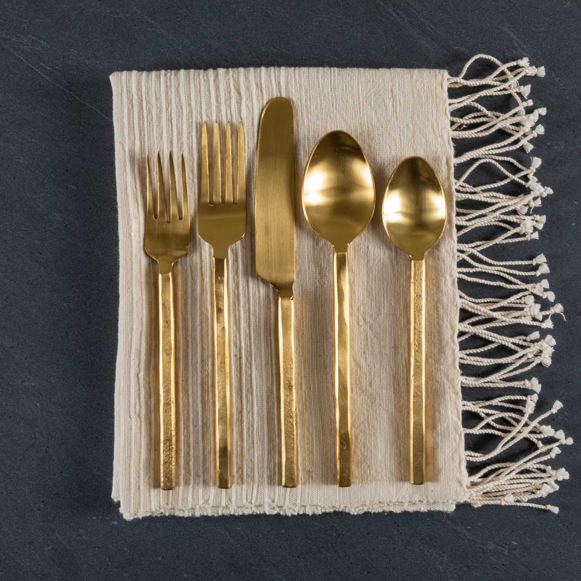 Add a touch of sophistication to your table with the Azura Gold Flatware Set. Crafted from robust materials, this luxurious flatware boasts a dazzling gold finish, introducing a timeless touch of elegance to any meal. Enjoy exquisite style and robust durability with every meal.