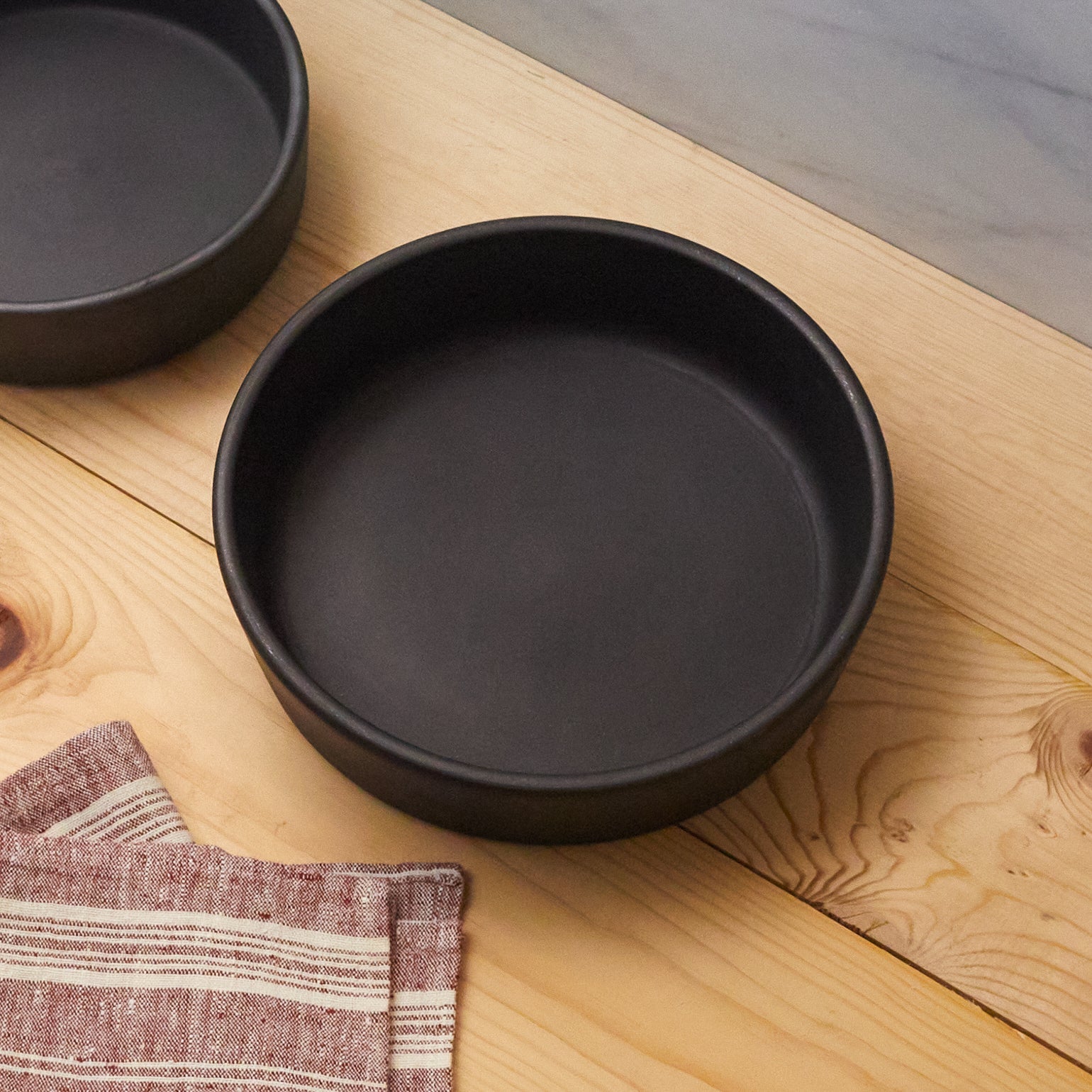 The Barro bakeware collection comes from northern Portugal. Called Barro Negro, or black clay, it is ideal for roasting, braising, and baking. A high fired earthenware without glazing, the length of time and temperature in the kiln develops deep carbonization resulting in the clay becoming a deep graphite like black. Flavor of food prepared in the barro negro is enhanced due to the "steaming" effect which occurs because of the porous quality of clay. Barro Negro bakeware is ideal for serving direct from oven to table.