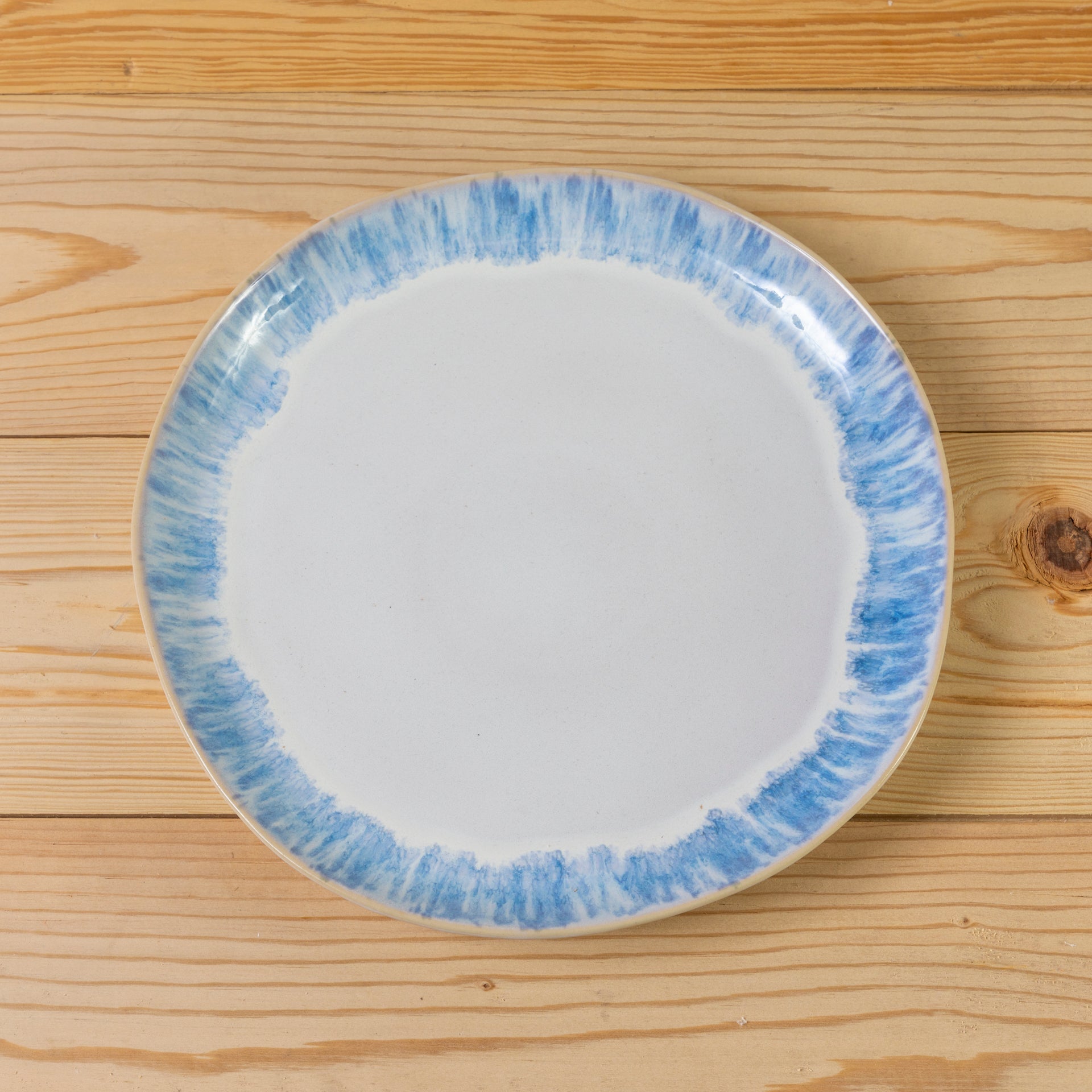 The warm breeze that blows from the east and cascades along the Algarve coast with fruity aromas and the fresh flavors of Ria Formosa was the inspiration for this collection. The blended white and blue glazes and organic shapes transport us to the intricate landscape of lagoons, canals, salt works, and sandy beaches stretching across deserted islands. This collection adds light to every gathering and turns any table into a memorable experience.