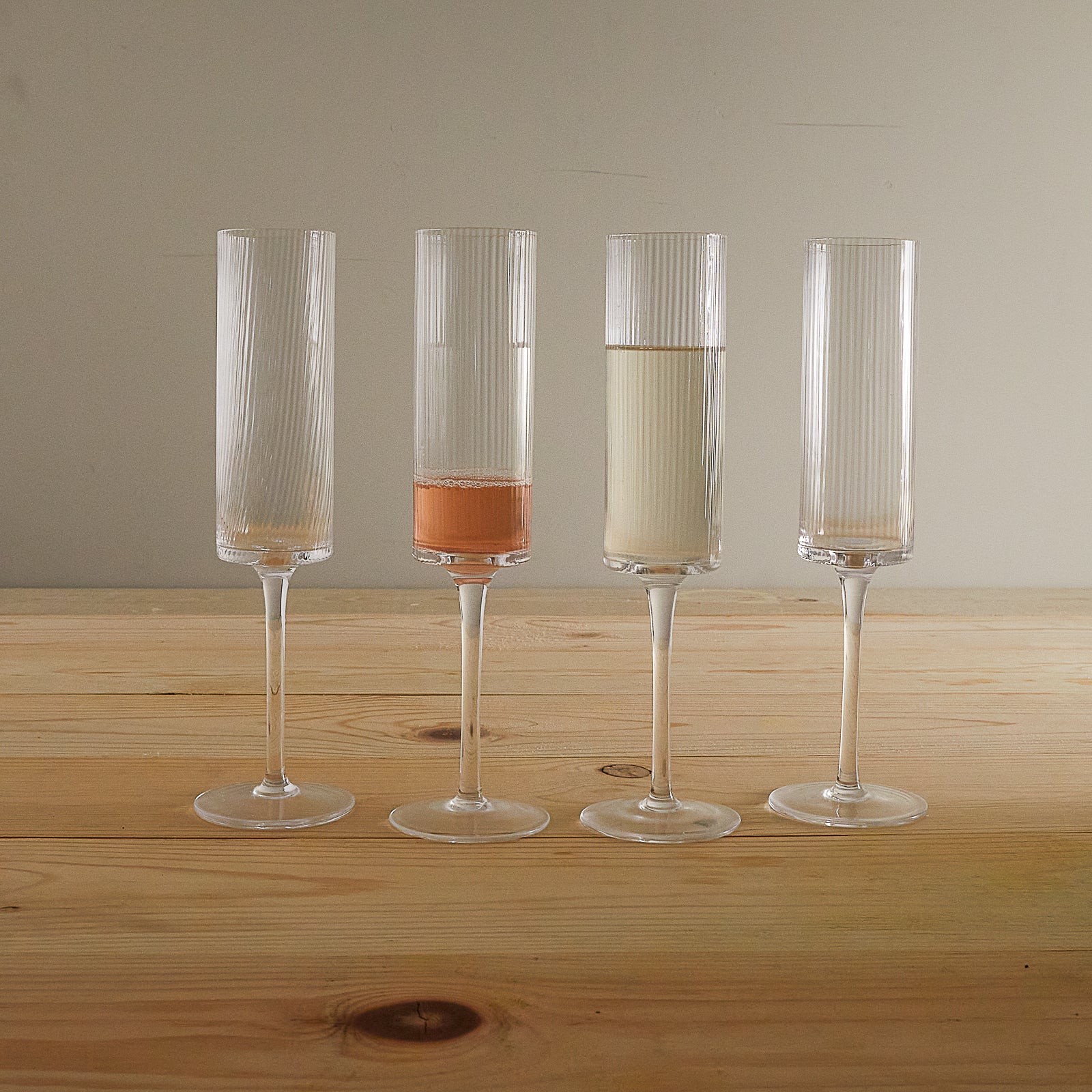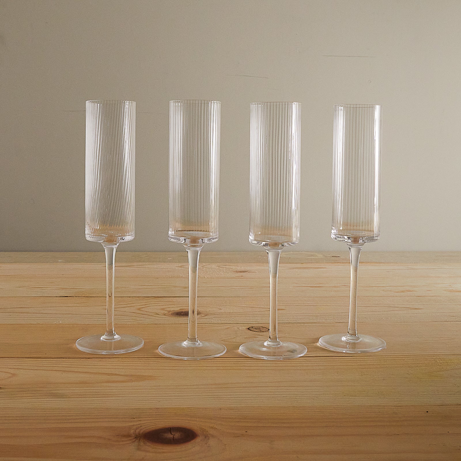 The Hayworth collection is all glamour and is an optical showstopper at the bar! Designed with an Art Deco influence, these chic bar glasses have a luxurious ribbed finish. This chic champagne flute is a unique way to present an old classic with a new twist.