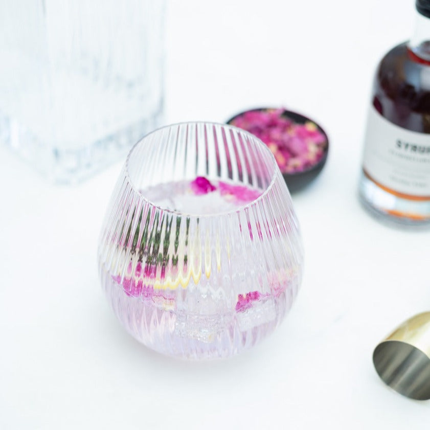 The Hayworth collection is all glamour and is an optical showstopper at the bar! Designed with an Art Deco influence, these chic bar glasses have a luxurious ribbed finish. This stemless sipper is a unique way to present an old classic with a new twist.