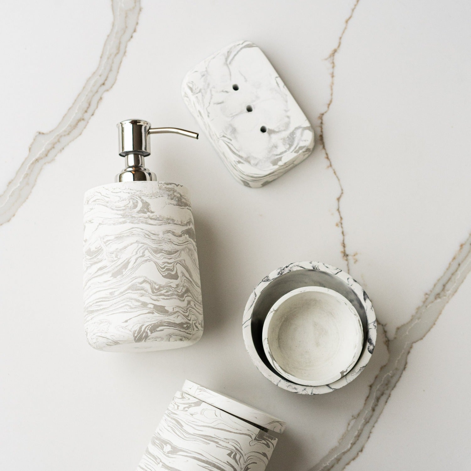 Our marbled cement soap dish is an eclectic addition to any ethically-minded interior. Their subtle texture and geometric silhouette pair elegantly with a variety of styles. Each piece is handcrafted by master artisans in small batches making them truly one-of-a-kind.