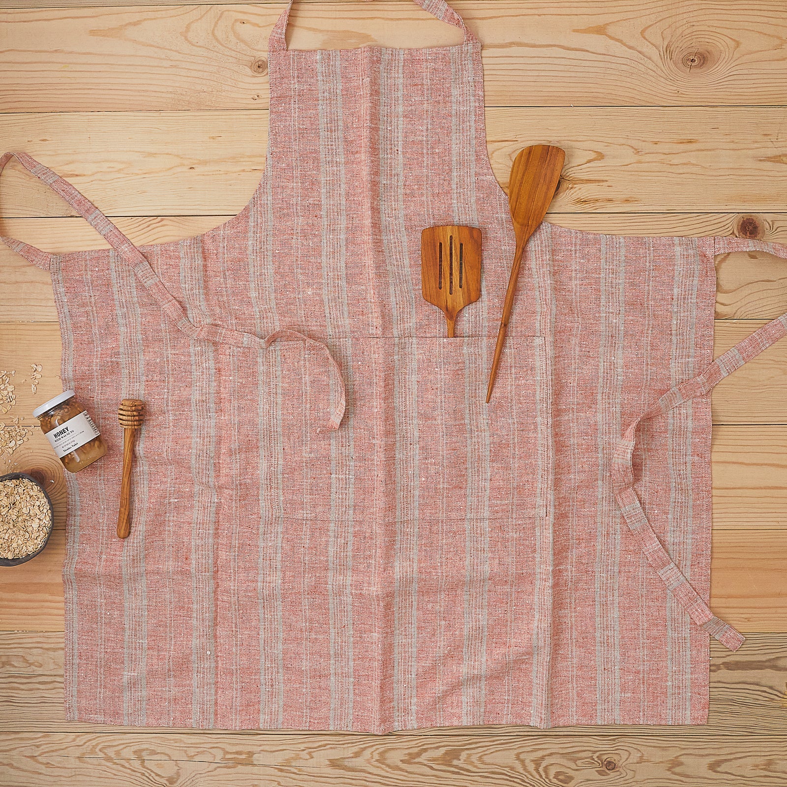 Multistripe Apron, Brick and Natural