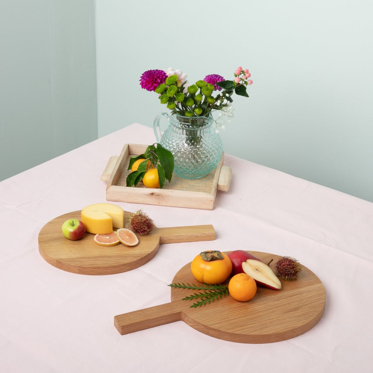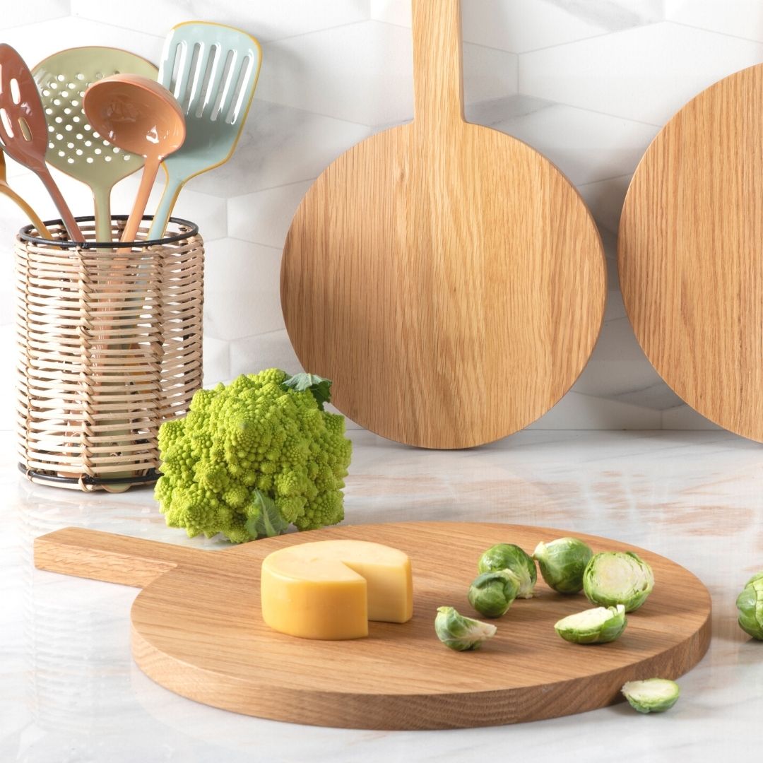 With their vivid grains and earthy hues, our oak wood pieces only grow more beautiful with time. These pieces are as durable as they are memorable. Each is hand-carved from a single piece of wood and and supports the planting of new trees with each harvest. Pair with our other oak plank boards for a complete collection.