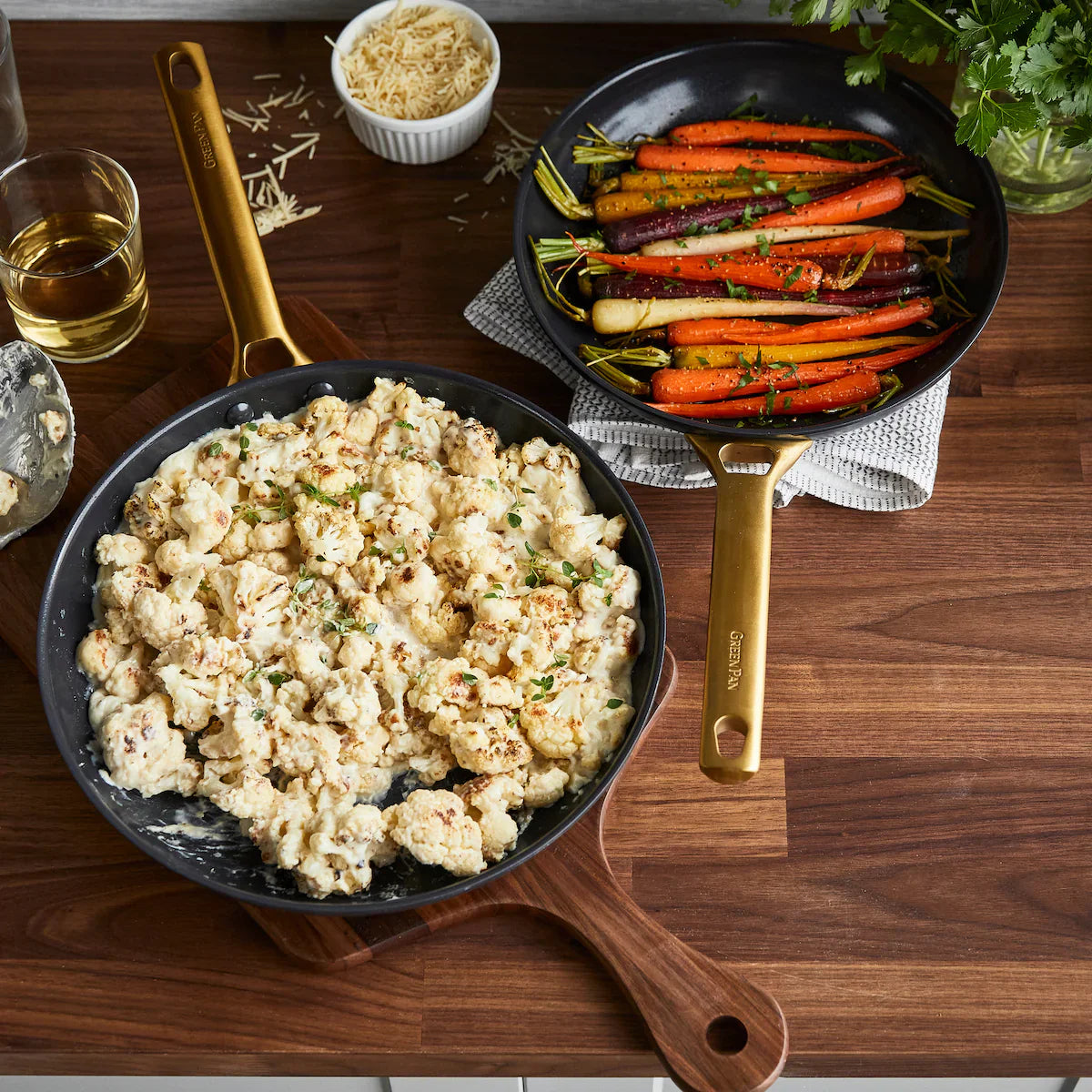 Made to feed your restless culinary imagination, this pair combines world-class tech with eye-catching style to deliver limitless possibilities. And these pans work on every stovetop thanks to their Magneto induction bases.