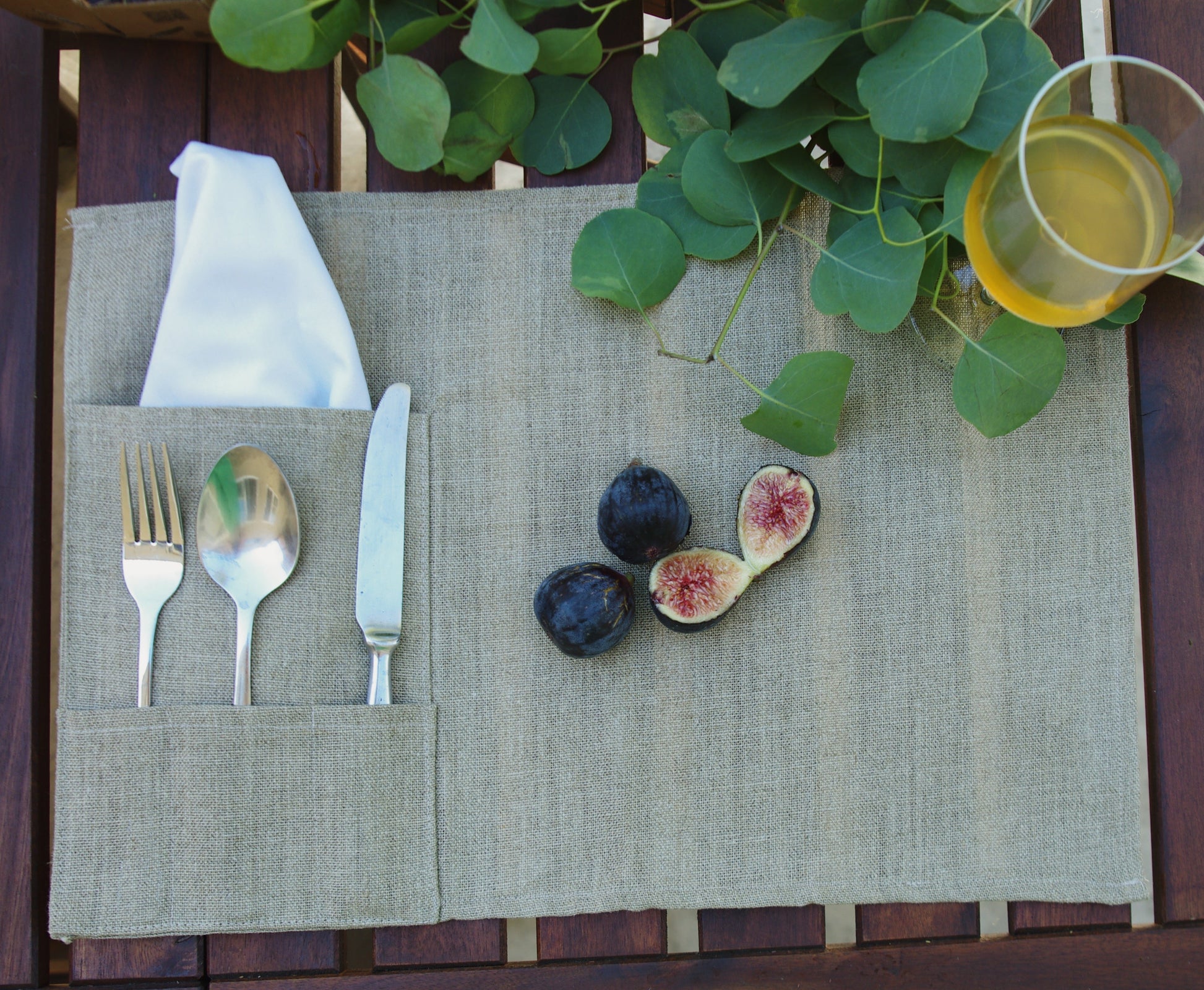 Includes two placemats. Ever heard of a placemat with a utensil holder built in? Now you have! Made from real Belgian flax linen, these placemats are the perfect addition to any table.